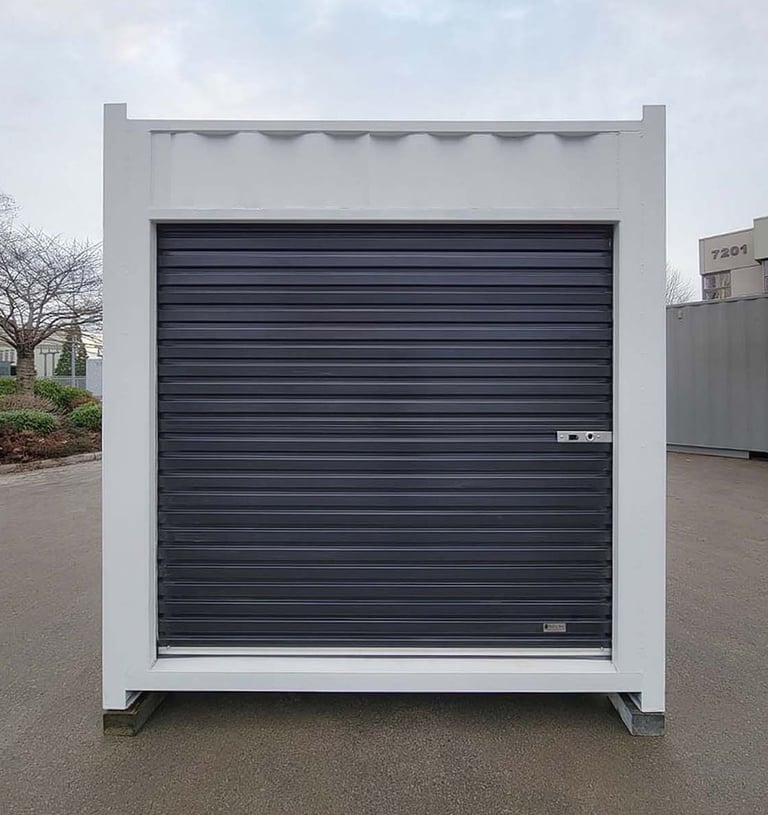 The roll-up door allows for quick loading and unloading, making it ideal for tools, equipment, and frequent-use storage. Built from durable steel, it is fully weather-resistant, secure, and perfect for sites with limited space.