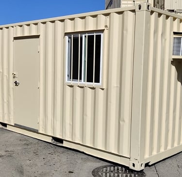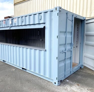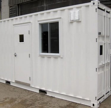 Our 20FT Sales Office Container is a professional and fully functional workspace, ideal for on-site sales operations, showrooms, and client-facing environments. Designed to create a clean and modern appearance, it provides a comfortable space to meet and engage with customers.Built from durable steel and fully insulated, it can be fitted with large windows, glass doors, lighting, electrical points, and air conditioning. Secure, weatherproof, and easy to transport, this unit offers a practical and stylish solution for mobile sales offices.