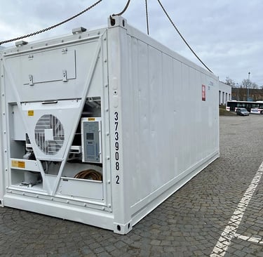 A brand-new, temperature-controlled container designed to safely transport and store perishable goods. Features reliable cooling systems, energy-efficient insulation, and a durable build for consistent performance in all conditions.