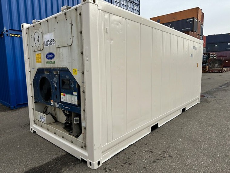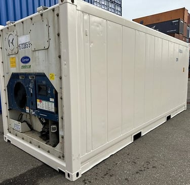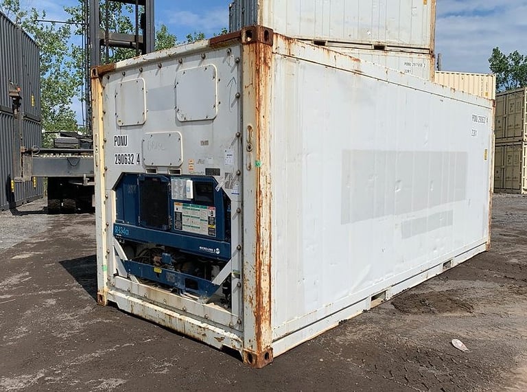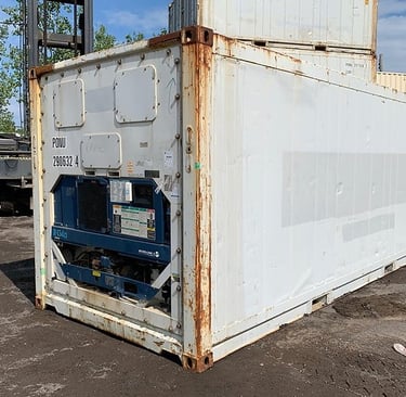 A pre-owned, temperature-controlled container ideal for storing or transporting perishable goods. Reliable cooling, durable construction, and cost-effective solution for businesses needing flexible cold storage.