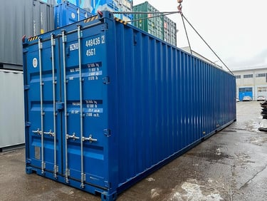 These containers come in standard blue or green colors and are equipped with slim line lock boxes. They are suitable for both shipping and storage purposes. New storage containers come with a 5-year CSC plate validity from the date of manufacture. Please note that they may have minor dents or scratches due to handling and lifting, which is normal in the industry.